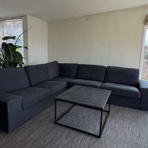 4 sits Mio soffa till salu. Ett nackskydd finns. Väl använd men inte trasig.