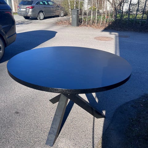 Runt svart matbord i gott skick.