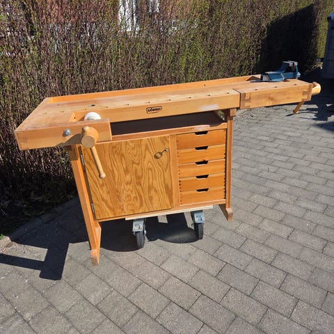 Snickarbänk i trä .Passar för snickeriarbeten, hobbyprojekt och som arbetsbänk i verkstad eller garage.