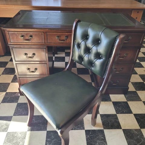 Engelskt skrivbord med stol och Chesterfield fåtölj