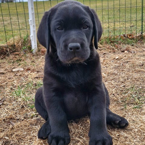 Mamman är en blandning av **75% labrador och 25% grand danois**, med fantastiska egenskaper – lugn, snäll och mycket familjekär.