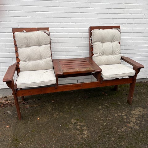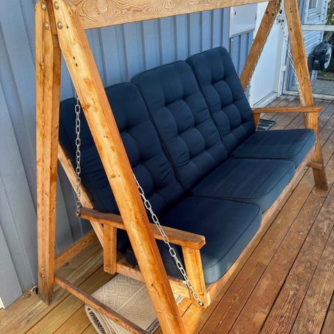Hamock i trä med gröna dynor.