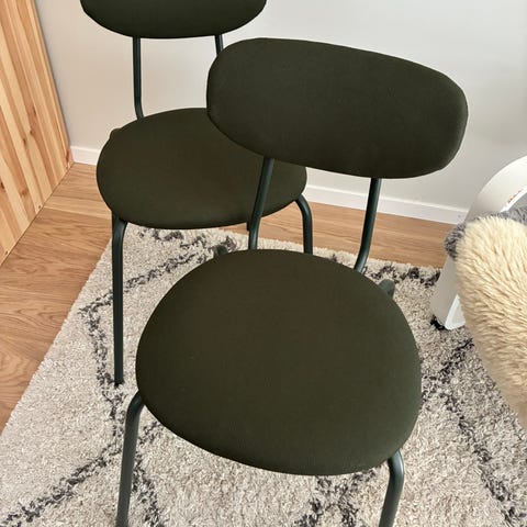 Säljer 2 stycken Ikea stolar. Blågrå klädsel, svarta ben.