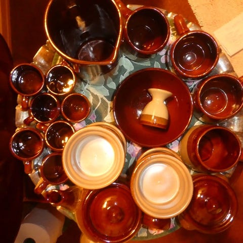 Set i melamin, 8 delar av varje i färgen greige.