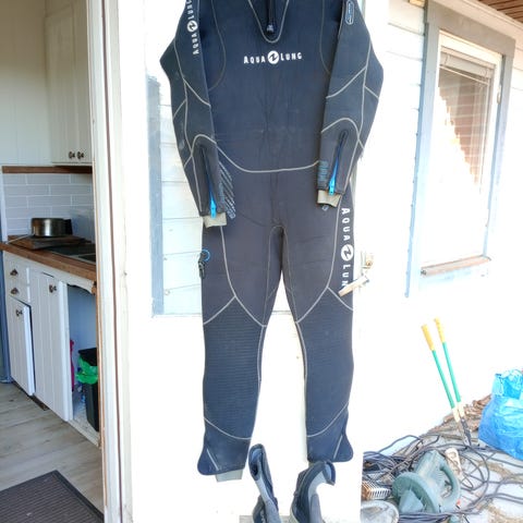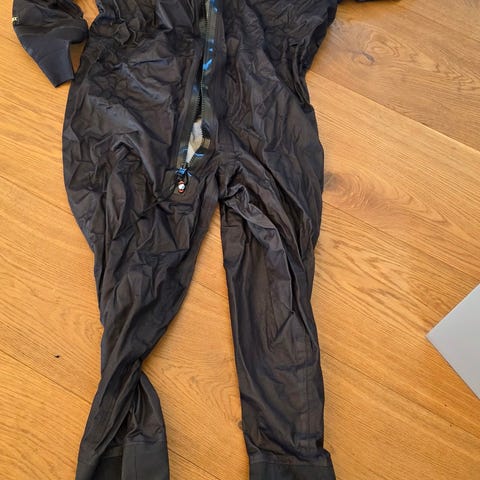 Neilpryde Sailing torrdräkter i svart färg i storlek M+L. Stället består av en helkropps overall med hög krage och justerbara ärmslut. Materialet är ett tekniskt tyg anpassat för segling, skoter, kanot mm, med förstärkningar och tejpade sömmar för att tåla fukt och vind. Passar för användning vid segling och andra vattenaktiviteter där skydd mot väder och vind behövs. Muddar, kragar, strumpor vattentäta. Perfekt med ett underställ under.