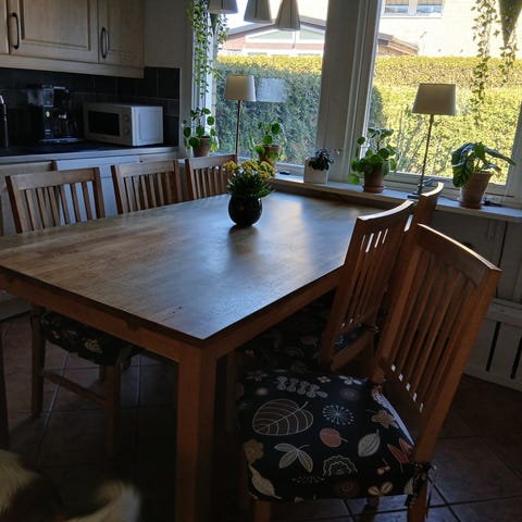 OBS! Det är inte IKEA utan hornbach hemmabygge med ek bänkskiva och ben.