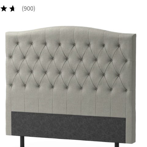 Mio sänggavel med stoppad, vadderad framsida i ljusgrått tyg. Gaveln har knapptuftad design med rutmönster. Passar som huvudgavel bakom säng och kan kombineras med olika typer av sängar och inredningsstilar. Exakta mått och materialkomposition saknas.