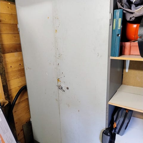 Vi skänker nu bort vårt vita förvaringsskåp då det inte längre behövs. En perfekt möbel för dig som vill få ordning i garaget, förrådet eller tvättstugan!