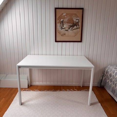 Väl använt, se bilder. Men bra och stabilt, går kanske måla/fixa till skivan om så önskas.
