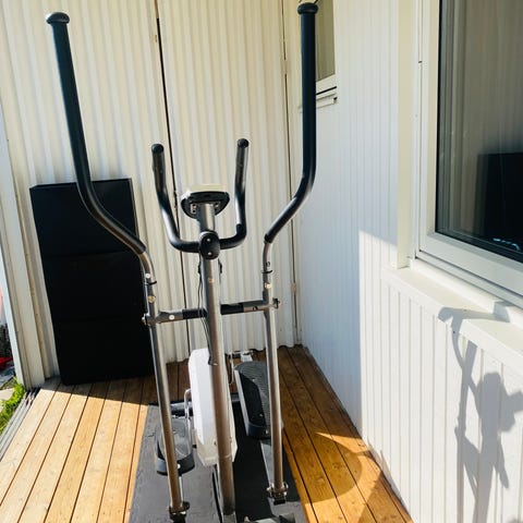 Thane Fitness Orbitrek Platinum crosstrainer i grå färg. Maskinen har ett digitalt display som visar tid, hastighet, distans och kaloriförbrukning. Utrustad med fotpedaler och rörliga handtag för träning av både över- och underkropp. Lämplig för hemmaträning och konditionsträning med justerbart motstånd via vred på ramen.
