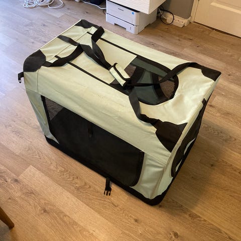 Tour soft crate hundbur i storlek XL med måtten 58,5 x 58,5 x 81,5 cm. Tillverkad i canvas med nätpaneler på sidorna för ventilation. Bärhandtag och ytterficka på framsidan. Lämplig som transportbur eller viloplats för hund, exempelvis i hemmet, bilen eller på resa.