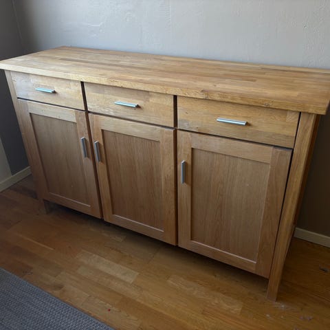 Fin ek skänk med bra förvaring. 3 lådor och 2 skåp.