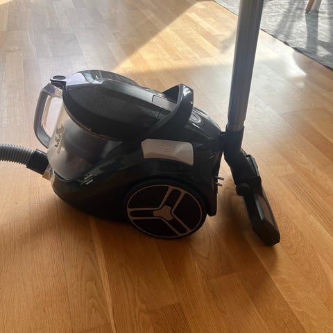 Philips Performer Silent Allergy dammsugare med pås-system. Modellen är avsedd för allergiker med allergifilter. Dammsugaren har teleskoprör, slang och golvmunstycke. Handtaget är lagat med tejp enligt bild. Passar för dammsugning av golv och mattor i hem- och lägenhetsmiljö.
