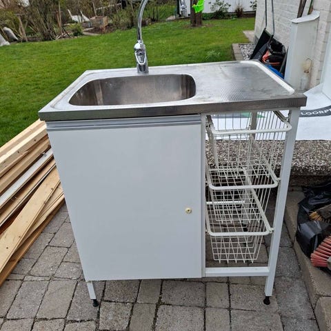 Diskbänken är från ett kök som revs nyligen och blandaren är i gott skick. Underskåpet i skick enligt bild, kan monteras bort för att enbart sälja ho/diskbänk. Samma pris.