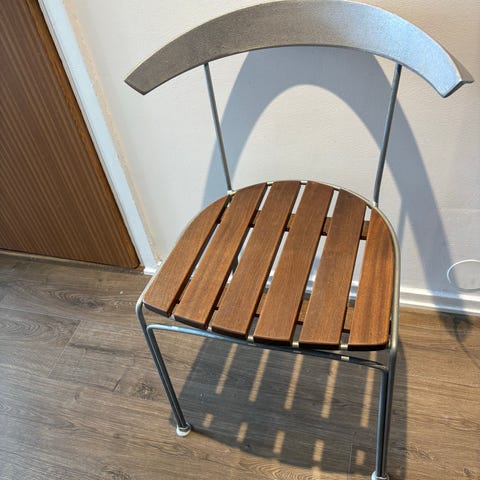 Två stolar Classic No.2 i varmgalvat stativ och svartlackad furu i sitsen. Fina skick, finns tecken på användning men inget större. Nypris 3300kr/styck på Byarums hemsida.