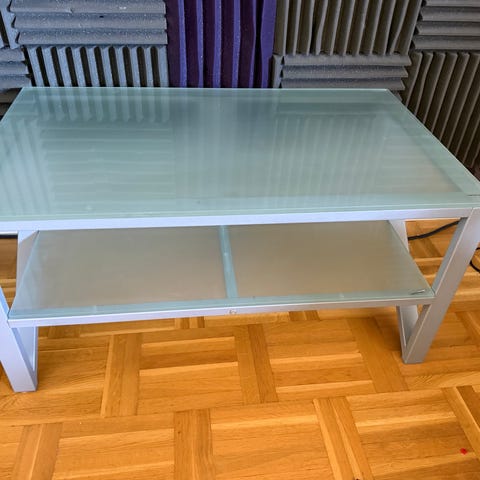 Stereomöbel i ok skick. Lite småskav här och var men ger ett gott intryck. Hyllplan i härdat frostat glas.