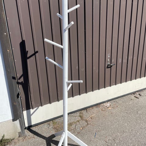 Praktisk och dekorativ klädhängare med flera krokar. Stabil modell med rund fot.