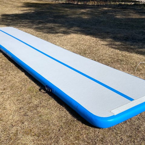 Säljer en airtrack som passar perfekt för gymnastik och cheerleading träning hemma. Stabil och enkel att använda. Rullas ut och luftpumpen är på under användning.
