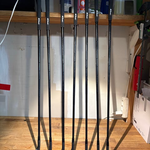 Cobra järnset golfklubbor med svarta klubbhuvuden. 5-P, grepp i mycket bra skick. Regular skaft, förlåtande klubbor som även ger lång och kontrollerad bollflykt, perfekta klubbor för en vardagsgolfare.