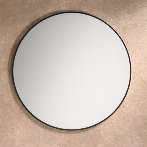 Rusta rund spegel med tunn ram. Spegeln har enkel, minimalistisk design som passar i exempelvis hall, sovrum eller badrum. Den runda formen gör den lätt att placera på olika väggytor och kombinera med annan inredning.