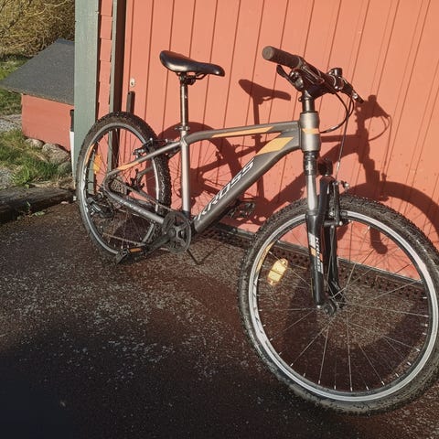 Mountainbike 26” för ca 10-15 år. Behöver ny vajer för bakbroms men fungerar i övrigt.