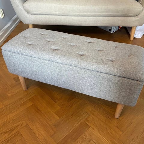 Hallbänk, troligtvis från Jysk säljes. I använt skick och har någon fläck som vi ej försökt få bort. Perfekt omklädnadsprojekt för den händige :)
