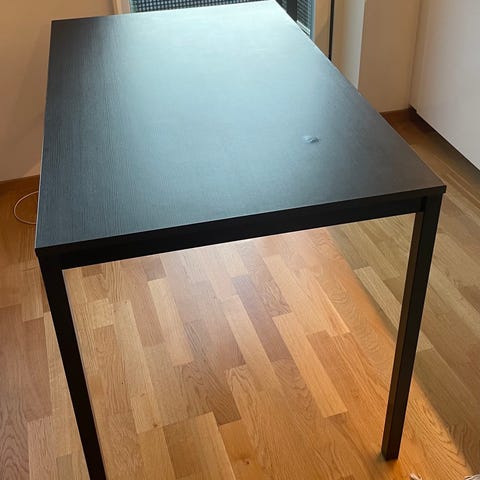 Svart matbord säljes. Bordsskiva i svart spånskiva med stabila stålben. Stilren och enkel design som passar kök eller matplats.