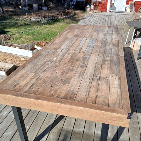 Soffbord ifrån ILVA med återvunnet trä och gjutjärnsben
