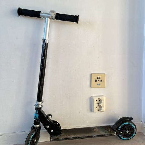 Stiga 120 S sparkcykel. Modellen har ett ståbräde med halkskydd och två hjul. Trasigt gummihandtag. Sparkcykeln är hopfällbar och passar för användning på plana underlag som trottoarer och gårdsplaner. Hämtas i Tyresö