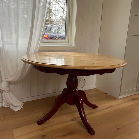 Hej! Säljer härmed ett rund träbord i massiv trä.