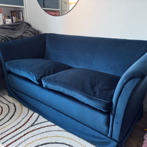 Soffa i blå sammet