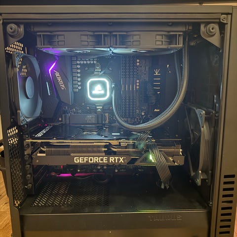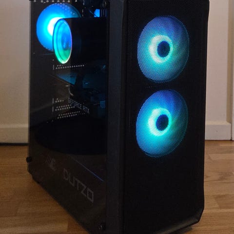 Gamingdator Ryzen 3900X/RTX3070, med dubbla skärmar och tangentbord och mus