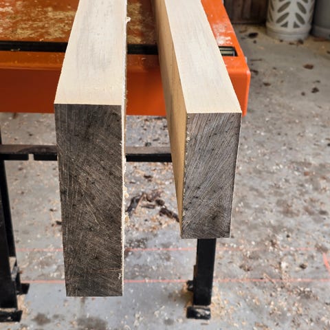 Det som säljs är alltså den kvarvarande delen av originalblocket. Man får ut en stock ur den och så blir det över en del material för kniv- yxskaft eller annat slöjd-projekt. Eller så räcker den till jättemånga knivskaft.
