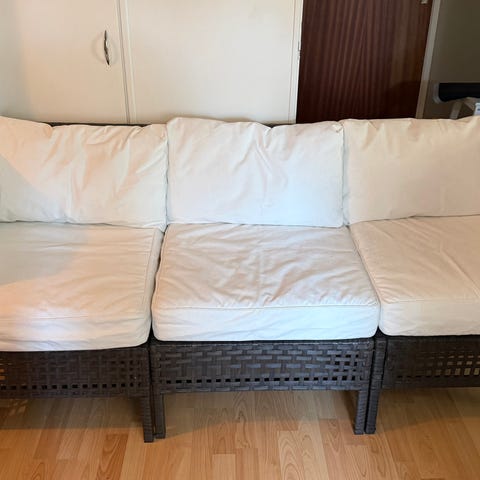 3-sitsig svart utesoffa till altanen eller uteplatsen! Stommen är i konstrotting med tillhörande bekväma kuddar. Kuddfodralen är avtagbara.
