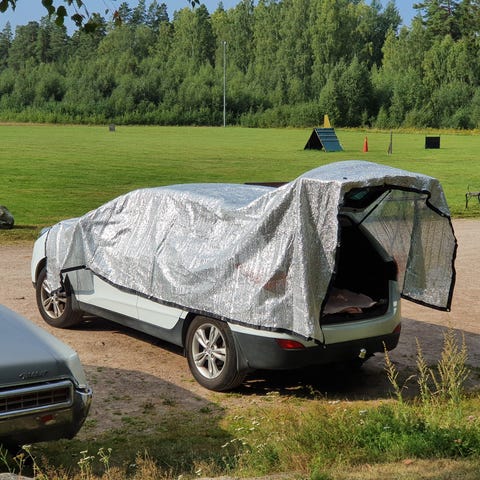 Gjort i kraftig belagd polyester. 2 st fönster som ventilerar, men som även kan stängas till. Bakstycket kan öppnas och fällas upp med 2 st stänger.