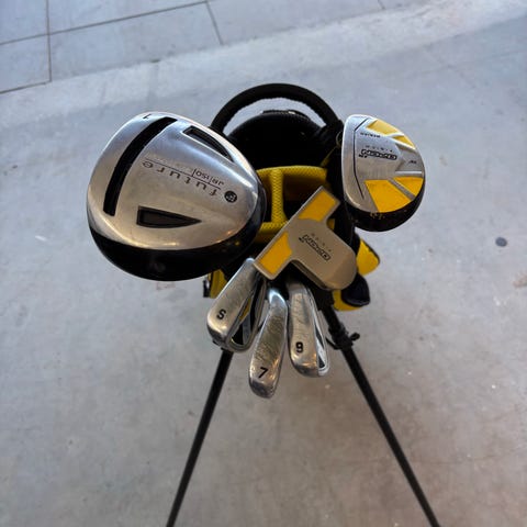 Wilson Prostaff JGI 8-11 år. Perfekt startset med bra kvalitet. Två järn + två hybrid + putter. Använda en säsong. Järnklubbor lite repor i övrigt nyskick. Ingår handske o bag. Höger.