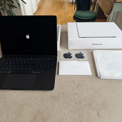 Macbook air m2 med utökade ram till 16 ist för 8gb, batterihälsan ligger på 91%