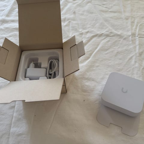 Apple AirPort Express router med stöd för 802.11n wifi. Enheten är vit och ansluts direkt till eluttaget med medföljande strömkabel. Lämplig för trådlöst nätverk i hem eller mindre kontor, samt för att utöka räckvidden på befintligt nätverk. Har nätverksport för anslutning till router eller modem och kan användas för delning av internetanslutning över wifi.
