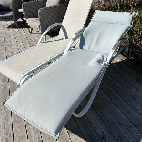 Säljer två solsängar, hela men inte rena. Har stått ute och behöver rengöras.
