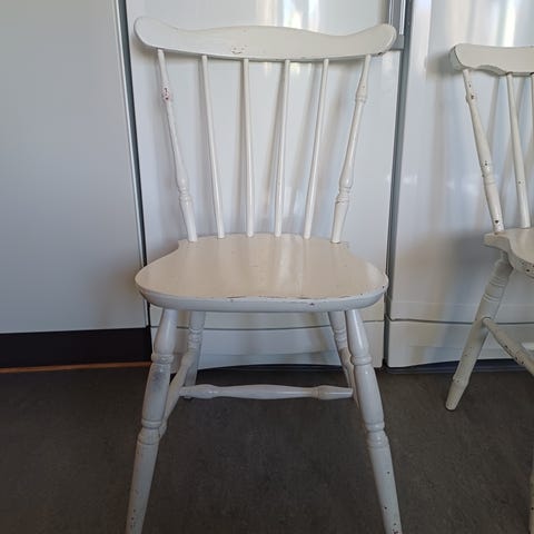 en äldre rosa pinnstol 37 x 42 x 80 cm till avhämtning. Normalt bruksslitage, stadig och i gott bruksskick.