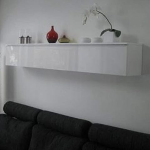 Säljer en modern och stilren väggmonterad TV-bänk BARONE (160 cm) med inbyggd öppen bioetanolspis.