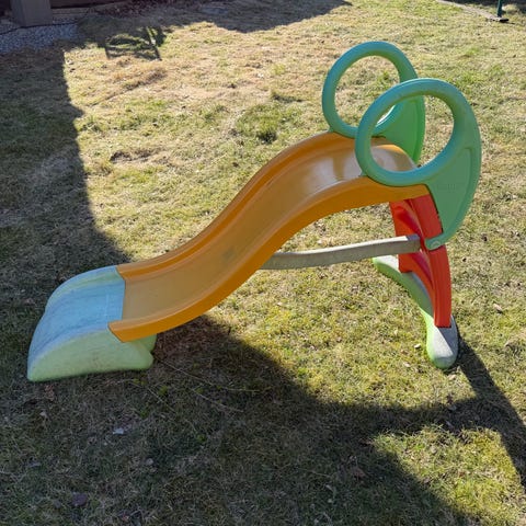 Liten urblekt rutschkana. Liten spricka i nedre delen, men mina barn tog alltid bort den delen.