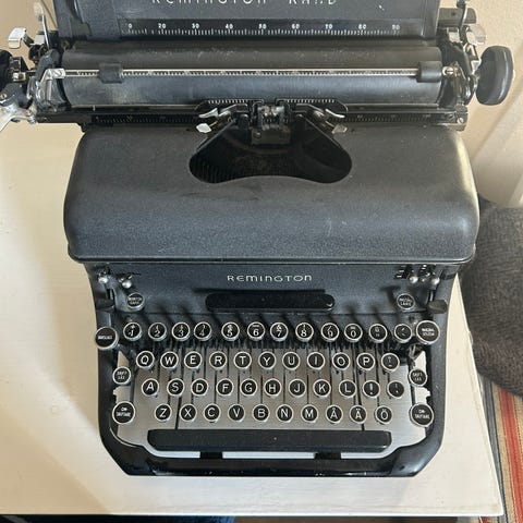 Remington Streamline skrivmaskin turkos/blå 1970-talet