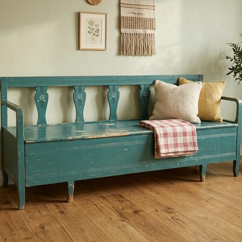 Ny kökssoffa i allmogestil med förvaring under sitsen.