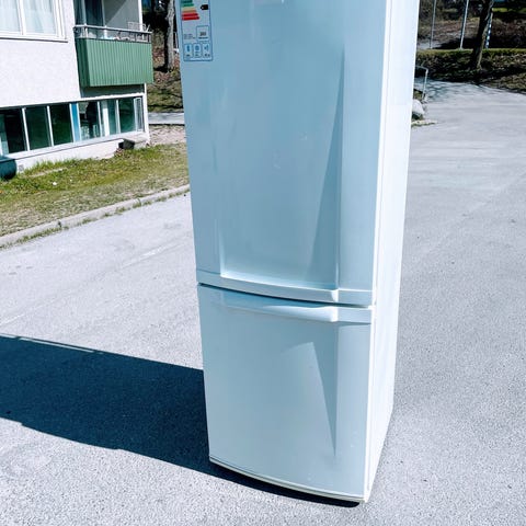 Rostfri Bosch kyl/frys enligt bilder med integrerat handtag. Lite små bucklor på front. Spricka i plastlåda till grönsaker och några små på plasthyllorna. Alla hyllplan finns. Använd fram tills nyligen. Se bilder. Relativt lätt att lasta från uppfart men liten trappa att bära. Mått höjd ~186 bredd 60. Djup total =65