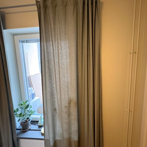 Selling a pair of beautiful UNNEN curtains from Jysk in the color "Sand". They have a high-quality linen look that lets in a soft, diffused light while providing privacy.