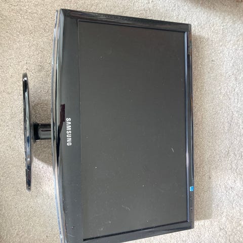 19 "LG bildskärm i svart utförande. Skärmen har flera anslutningar på baksidan, bland annat HDMI, DVI, VGA, komponent, komposit, SCART. Den står på en rund fot och har inbyggda reglage på sidan. Passar som datorskärm eller extern skärm till annan utrustning som har kompatibla anslutningar. Fjärrkontroll ingår.