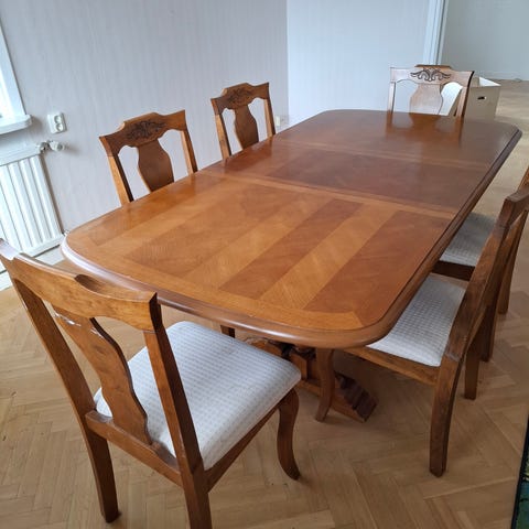 Matbord med sex stolar