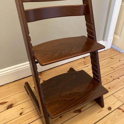 Stokke Tripp Trapp matstol i vit färg med ett praktiskt babyset/bygel och ryggstöd för mindre barn. Justerbar sittplatta och fotstöd som kan anpassas efter barnets längd. Stabil konstruktion i trä med benförlängare som ger bra stöd mot golvet. Passar som matstol vid bordet för barn i olika åldrar, från småbarn med bygel till större barn utan bygel.