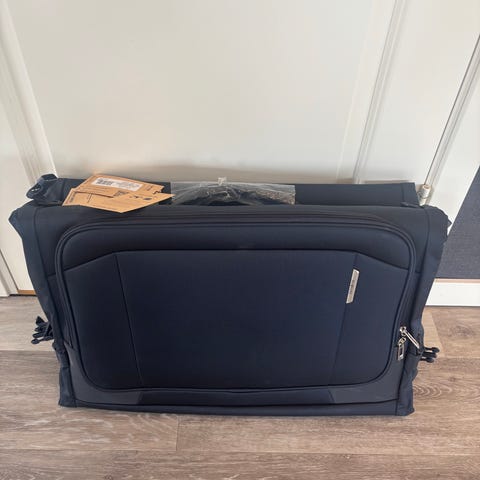 Samsonite mjuk resväska mellanstor och expanderbar. Mått 72 x 48 x 29/35 cm 2 fack på utsidan av locket och 2 fack på insidan av locket. TSA-lås (kodlås för stora facket). Vikt ca 4,4 kg Resväska i mycket bra skick, inga trasiga sömmar eller revor i tyget. Det finns några små märken på hjulen och stödbenen från resor.